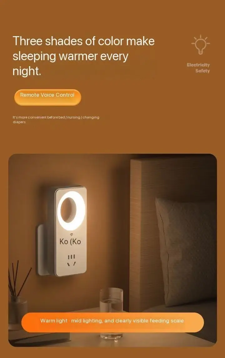 Luz de presença controlada por voz, lâmpada de proteção ocular USB, candeeiro de mesa LED, candeeiro de parede com casquilho